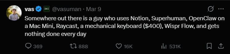The tweet seemed to resonate with alot of vibe coders I have spoken to recently. Compared to last year, where vibe coders were spending their time across tens of different tools and platforms (think Loveable, Bolt, Base44 etc.), this year everyone seems to be using the big two. AKA Codex or (more commonly) Claude Code.